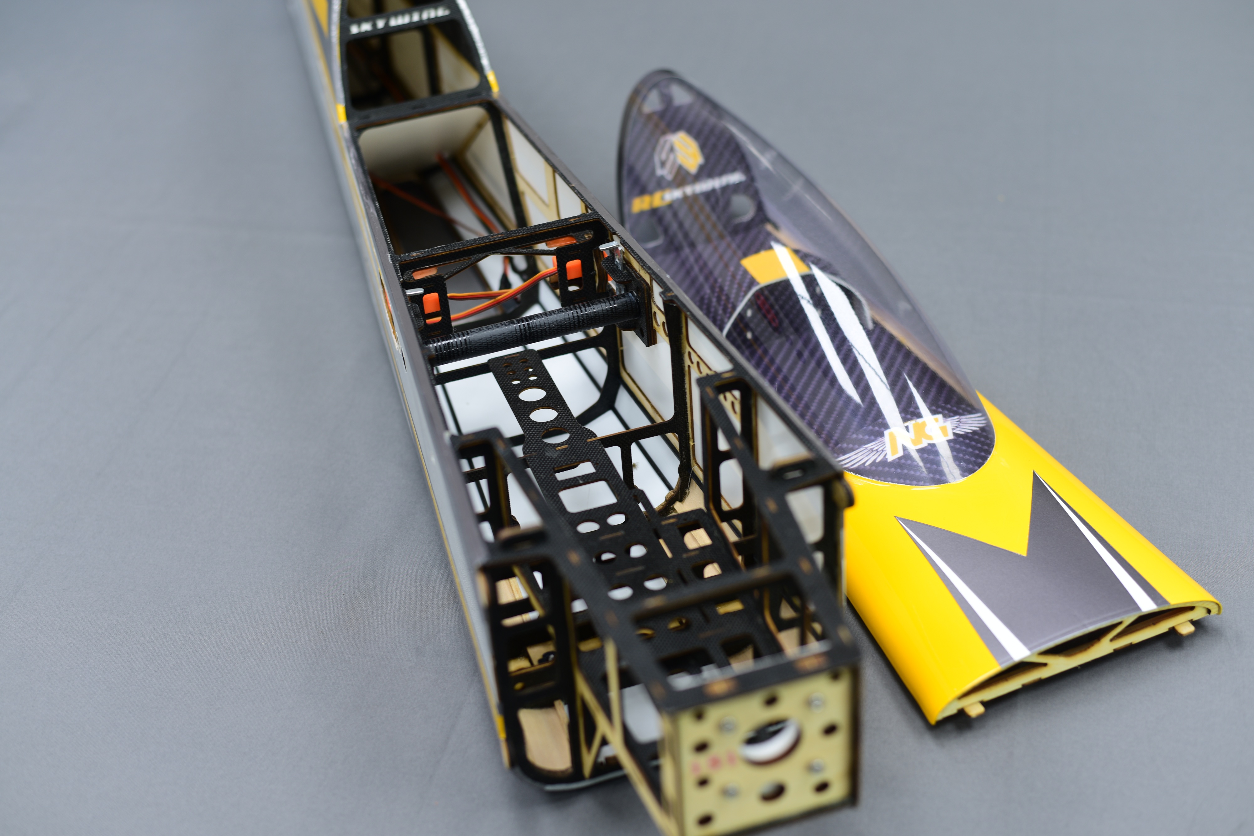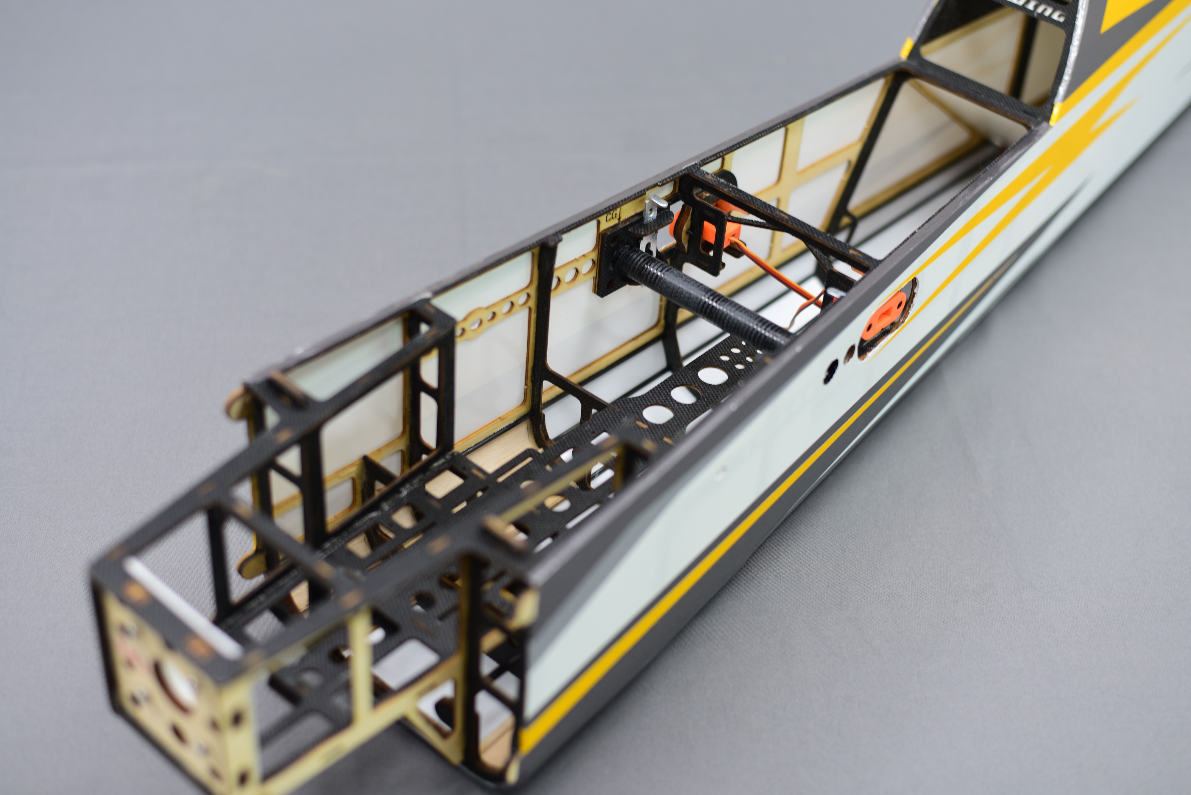 Ab Werk anscharnierte und abgedichtete Quer- und Höhenruder, CFK Fahrwerk und CFK Hecksporn, vor-installiertes Instrumentenbrett in Klarsichtkabinenhaube